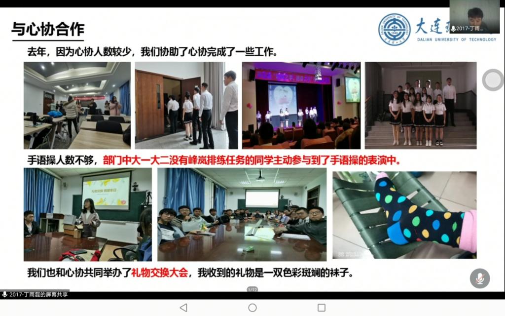 由于疫情特殊形式,本次答辩会通过腾讯会议平台以线上视频连线的方式进行。但疫情不能阻止大家展现自我的热情。以往社会工作的经历一幕幕回映在同学们眼前,同学们朝花夕拾,仔细整理,要在这次答辩中向评委展现自己优秀的一面。社会工作奖学金采取“基础分值+现场打擂”的方式进行评审。参与答辩打擂的同学依次打开摄像头并共享电脑屏幕进行汇报,每位同学的汇报时间不超过三分钟,汇报完毕后评委老师扫描微信二维码进行评分。