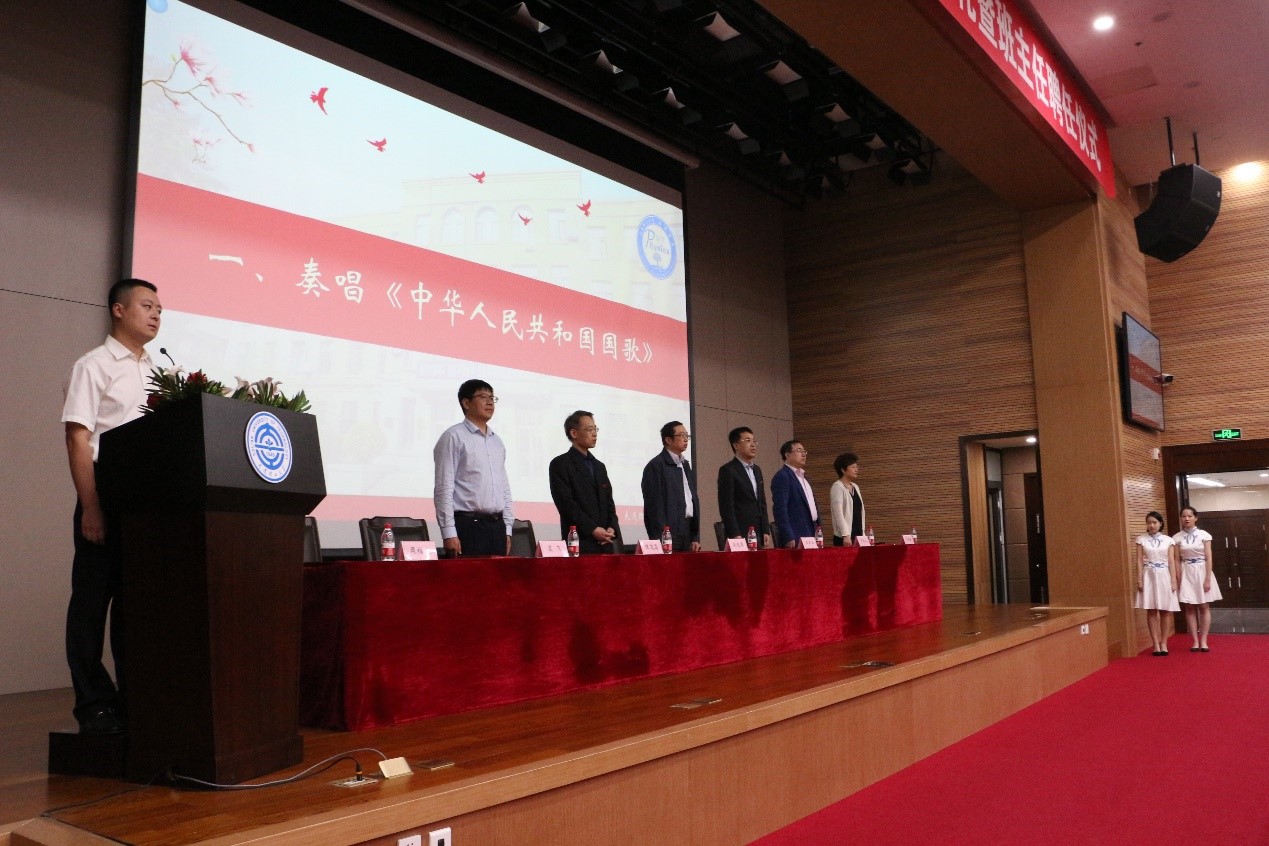 大会第一项全体起立奏唱国歌。当熟悉的旋律响起,师生们庄严地咏唱国歌,表达着自己的爱国之情。合唱结束后,由王正汹书记宣读乐鱼app官网2020届班主任以及思政班主任的聘任名单。接着聘任教师郑重地接过聘书,同时也担起引领同学成长的责任。