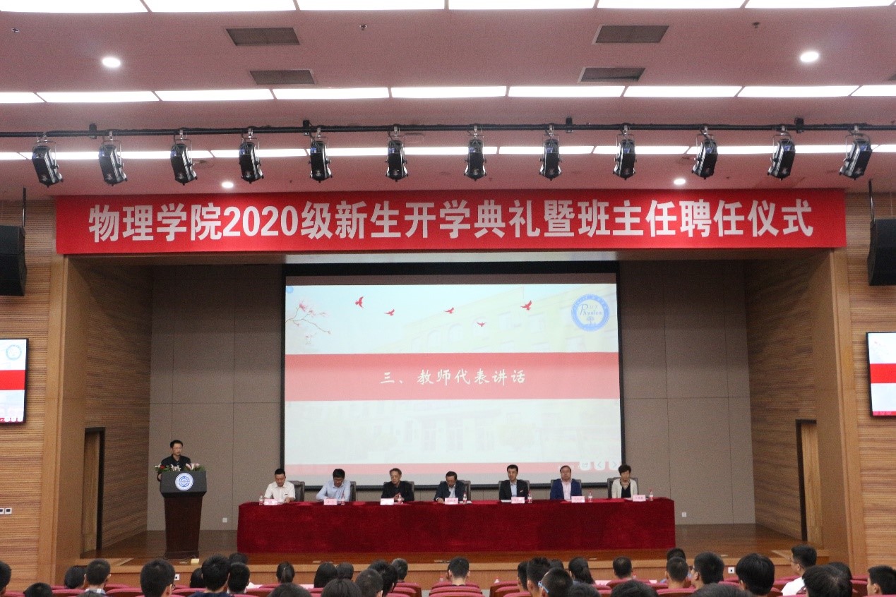 接下来,胡章虎副教授作为教师代表进行讲话。他以一个乐鱼app官网工作者和一个毕业十余年的老学长身份与新生们交流在大工学习生活中的心得体会。胡教授向同学们强调努力学习的重要性,激励同学们努力奋斗,以知识为食,征服物理的学海,以奋斗为翼,翱翔在真理的天空。