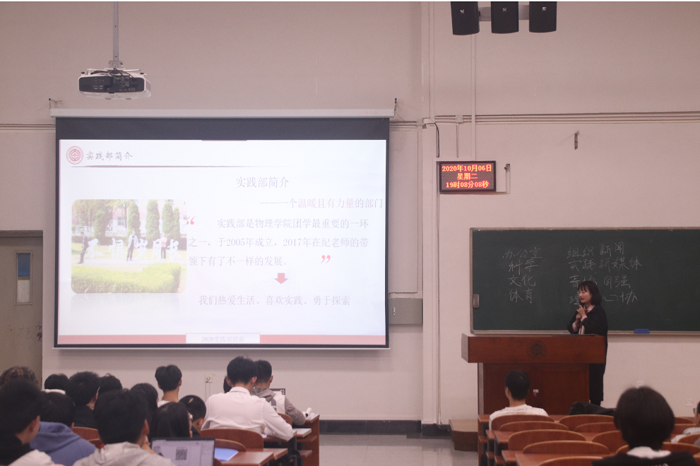 接下来,由各部门的部长介绍各部门的工作内容以及部门特色。从学生会到团委十二个部门依次进行介绍。在乐鱼app官网的领导下,乐鱼app官网团学社的各个部门分工合作,宣传并举办院内各种活动,共同致力于服务学生、学院建设。在招新宣讲会上,办公室新颖的ppt、体育部部长阳光开朗的开场白、以及实践部门的招新短视频等新颖有创意的招新方式引得全场热烈的掌声。在团学社部门招新宣讲完毕后,校青年协会、乐鱼app官网足球队,乐鱼app官网的辩论队向刚刚迈入大学的20级同学发出诚挚的邀请。