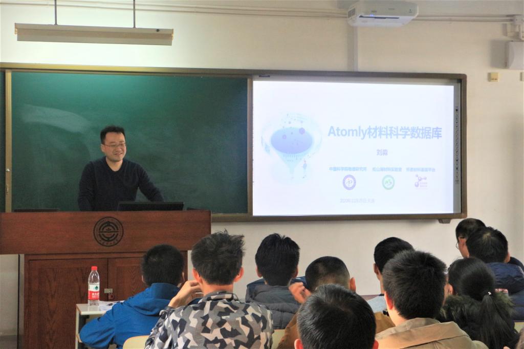 研究》,向学生们展示中科院物理所自行研究的Atomly材料科学数据库,阐述高通量计算在寻找未知新材料方面的巨大