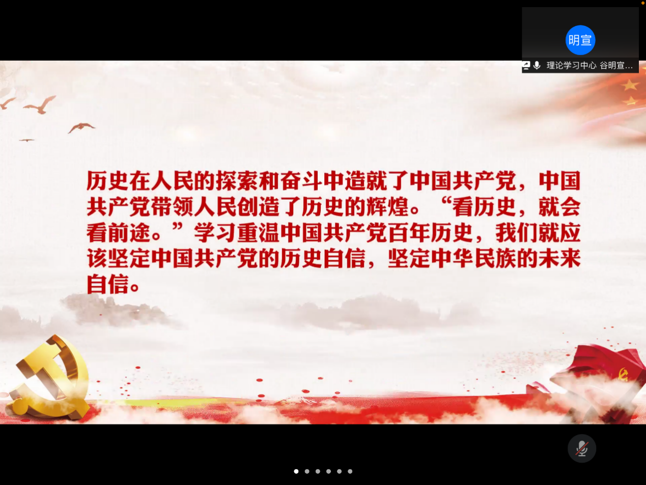 值此中国共产党百年华诞,中国两个一百年交汇的重要节点,通过此次宣讲会,同学们深刻体会了党史精神内涵,从中懂得结合自身行动来遵守行为规范,共同在建设社会主义新时代的道路上前进。