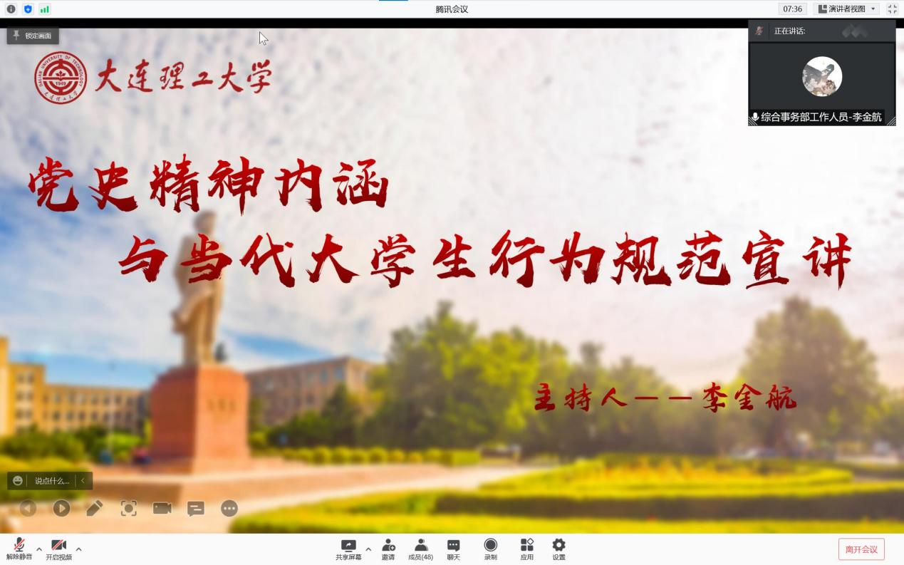2021年11月12日18:30,乐鱼app官网党史精神内涵与当代大学生行为规范宣讲在线上顺利召开。