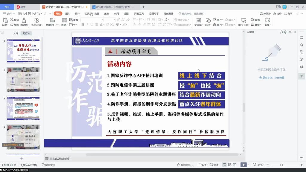 2021年11月23日晚上18:30,乐鱼app官网和光电工程与仪器科学学院联合举办西安路二号社区服务项目线上立项答辩会。本次答辩的主持人为光仪社区挂职中心主任康元。出席本次答辩的评委有光仪社区挂职中心主任康元、物理社区挂职中心主任邢静文、以及两学部院实践部工作人员。